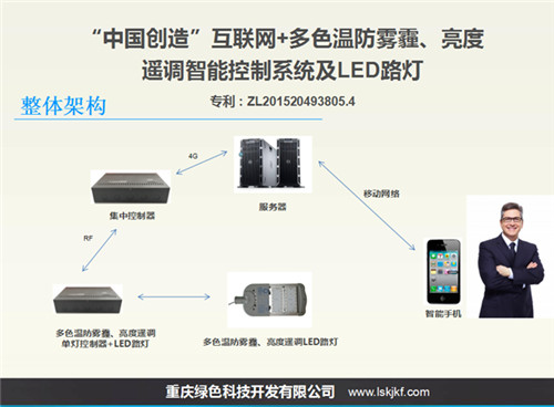 多色溫防霧霾、亮度遙調(diào)新一代LED路燈應(yīng)用智能制造技術(shù)主要包括 “智能集中控制器”、“智能終端多色溫防霧霾、亮度可調(diào)控制器”、“多色溫防霧霾、亮度可調(diào)LED照明路燈”等硬件和“智能軟件編程”、“自動感應(yīng)PM2.5傳感技術(shù)”、“溫度傳感技術(shù)”等新一代應(yīng)用智能制造技術(shù),同時兼容其它路燈遠程智能控制系統(tǒng)功能。專利技術(shù)《互聯(lián)網(wǎng)+多色溫LED路燈、隧道燈六遙控制系統(tǒng)(ZL201520493805.4)》經(jīng)科技查新已獲得《科技查新報告》(報告編號:J201508016831),證明了是“中國創(chuàng)造”LED路燈應(yīng)用智能制造獨一無二的先進技術(shù);該技術(shù)已列入《2015年度重慶市中小企業(yè)科技成果轉(zhuǎn)化項目》(渝中小企〔2015〕188號),并申請了LED智能控制技術(shù)重慶市工程研究中心【渝發(fā)改技〔2015〕1865號】。