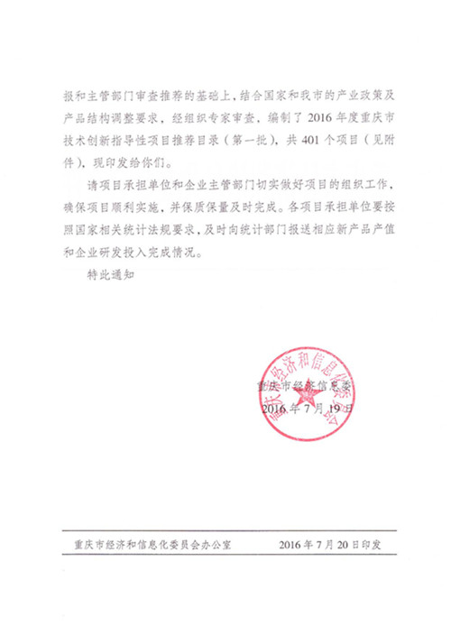 熱烈祝賀重慶綠色科技開發(fā)有限公司申報的“互聯(lián)網(wǎng)+”多色溫防霧霾、亮度遙調(diào)新一代LED路燈及遠(yuǎn)程智能控制系統(tǒng)成功列入《2016年度重慶市技術(shù)創(chuàng)新指導(dǎo)性項(xiàng)目》