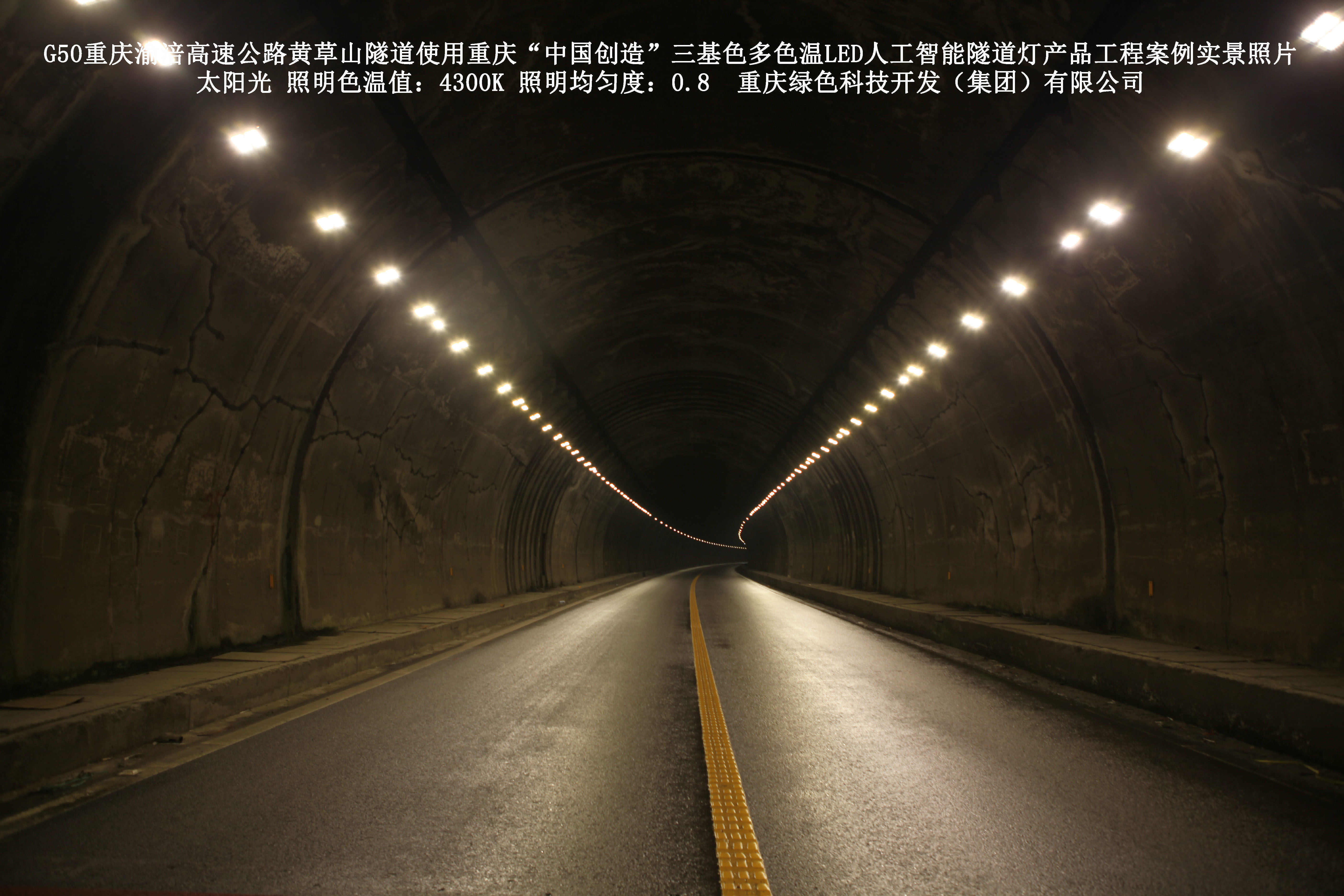 2016年7月,重慶渝涪高速公路有限公司使用了我司研發(fā)制造的重慶“中國創(chuàng)造”三基色多色溫LED人工智能隧道燈,對G50重慶渝涪高速公路黃草山隧道實(shí)施了綠色照明科技節(jié)能改造工程,工程實(shí)施后,極大地提高了隧道內(nèi)照明清晰度、燈光均勻度、舒適度。通過智能終端實(shí)現(xiàn)單燈感知、線纜防盜報(bào)警,與原高壓鈉燈相比,節(jié)能率60%以上,有效解決了關(guān)閉控制回路或間隔關(guān)燈方式造成的照明暗區(qū),確保車輛通行的安全。