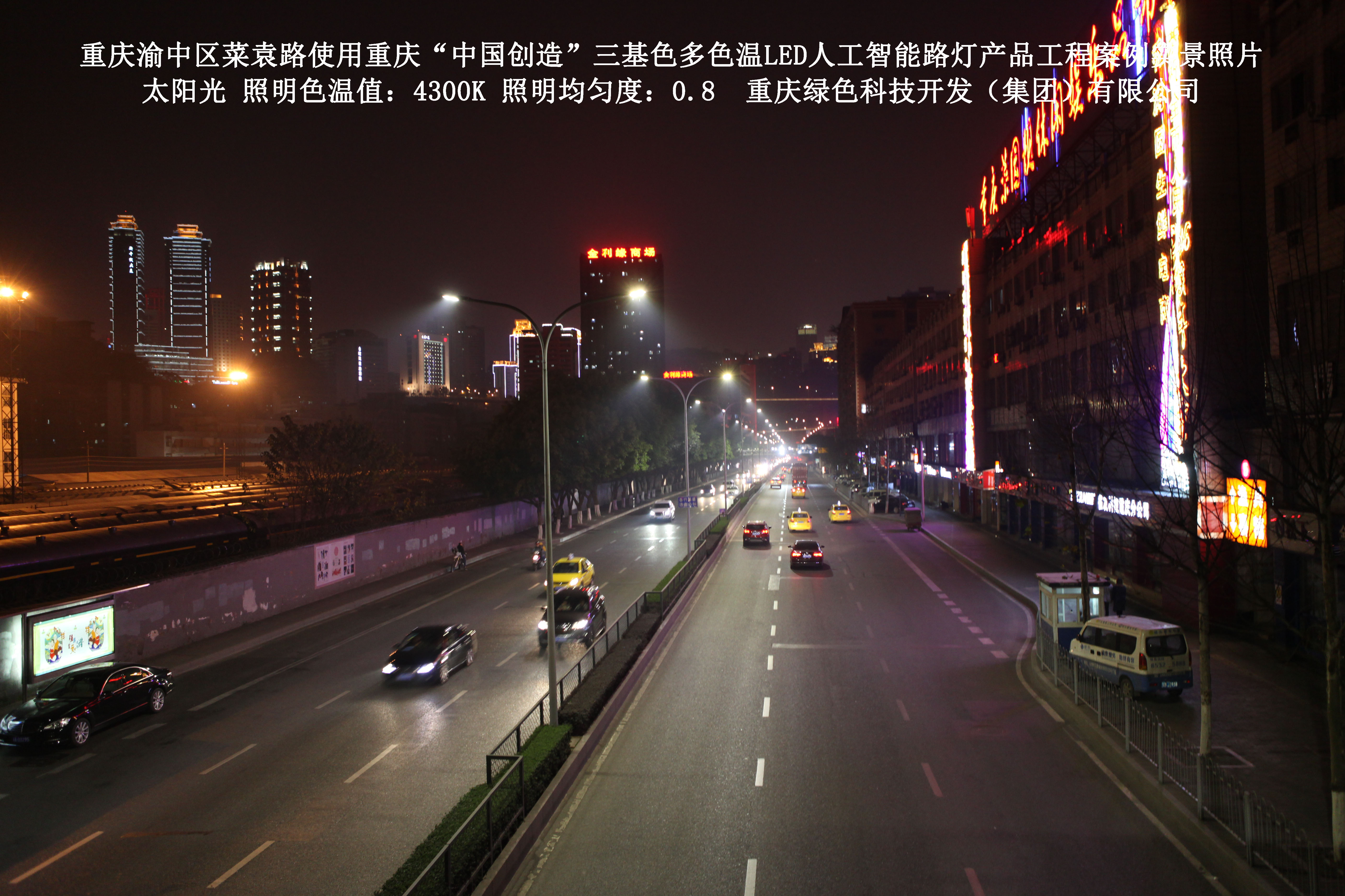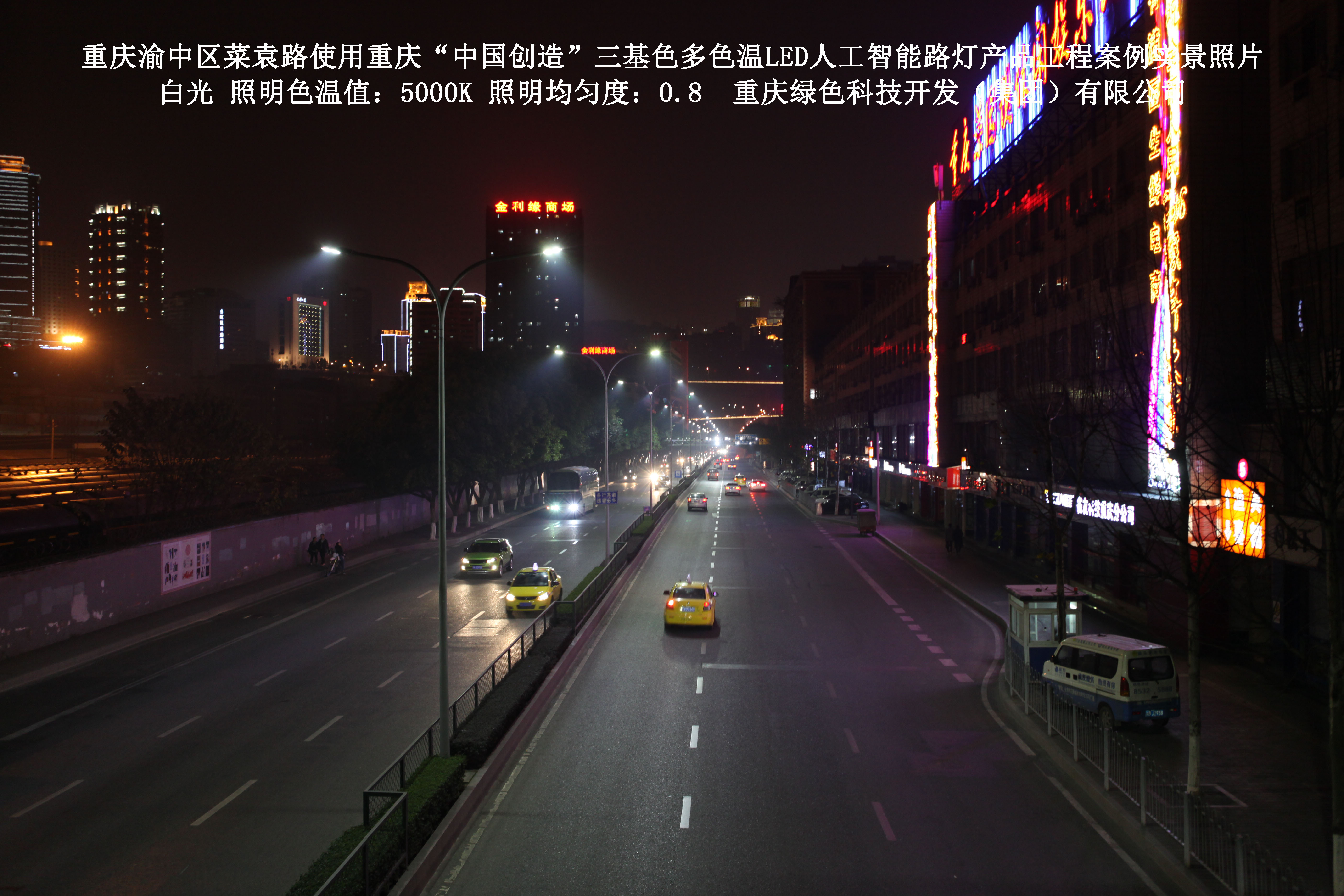 2013年10月,重慶市城市照明管理局使用了我司研發(fā)制造的重慶“中國(guó)創(chuàng)造”三基色多色溫LED人工智能路燈,對(duì)渝中區(qū)菜袁路實(shí)施了綠色照明科技節(jié)能改造工程,該工程已全面竣工。工程實(shí)施后,極大地提高了城市照明清晰度、燈光均勻度、舒適度。通過(guò)智能終端實(shí)現(xiàn)單燈感知、線纜防盜報(bào)警,與原高壓鈉燈相比,節(jié)能率60%以上,有效解決了關(guān)閉控制回路或間隔關(guān)燈方式造成的照明暗區(qū),確保行人和車(chē)輛通行的安全,實(shí)現(xiàn)城市路燈照明系統(tǒng)的智能化管理,推進(jìn)了智慧城市建設(shè)。