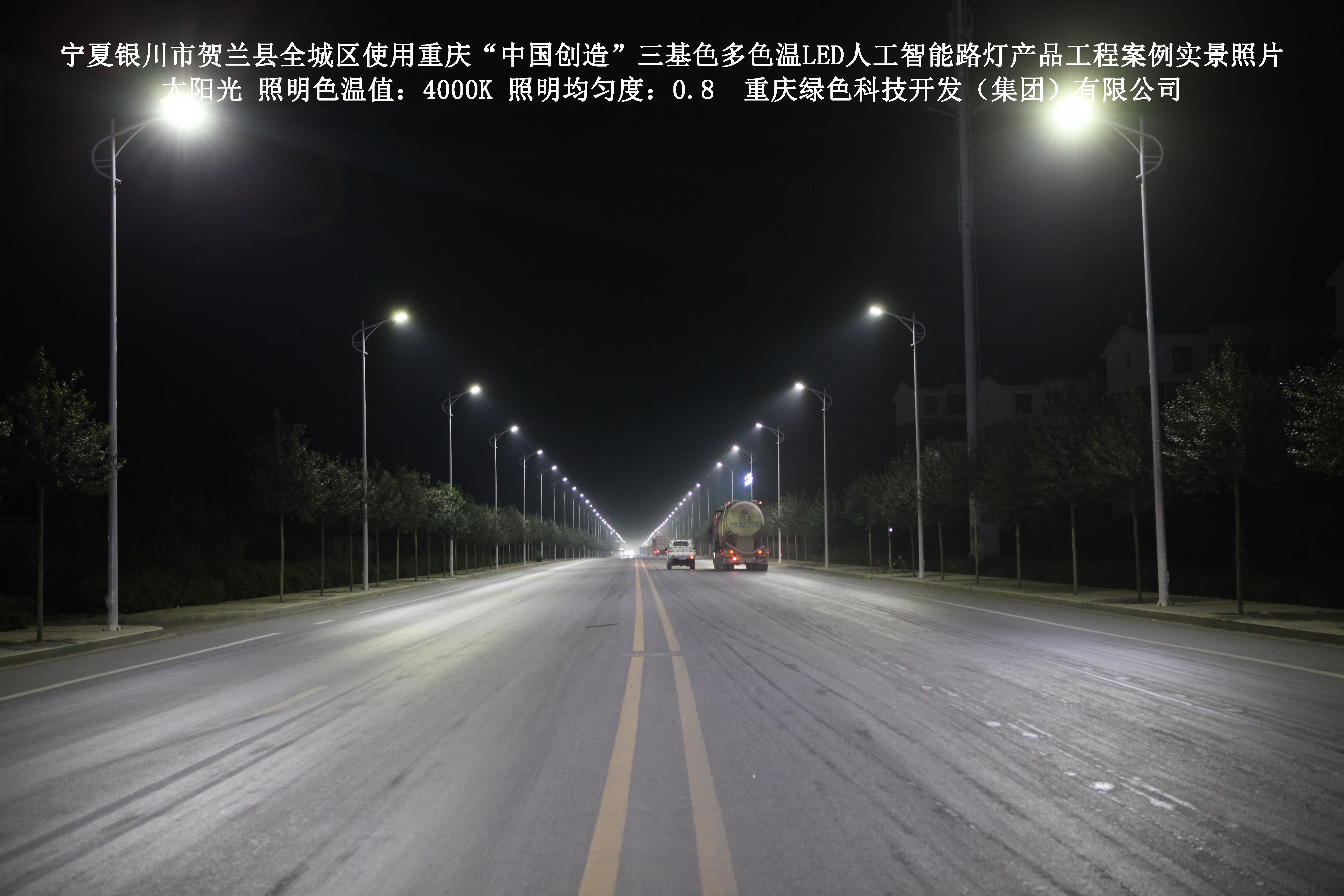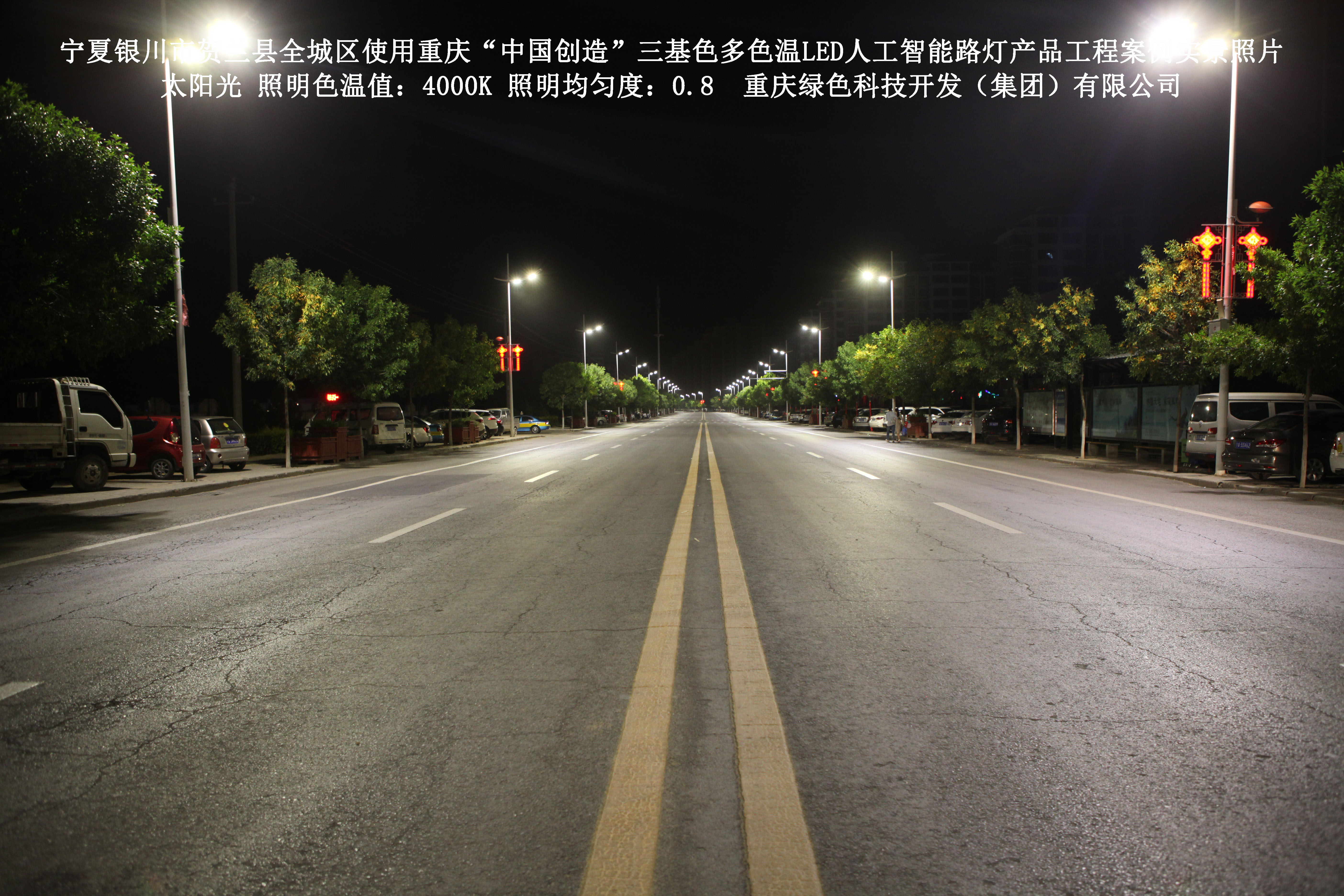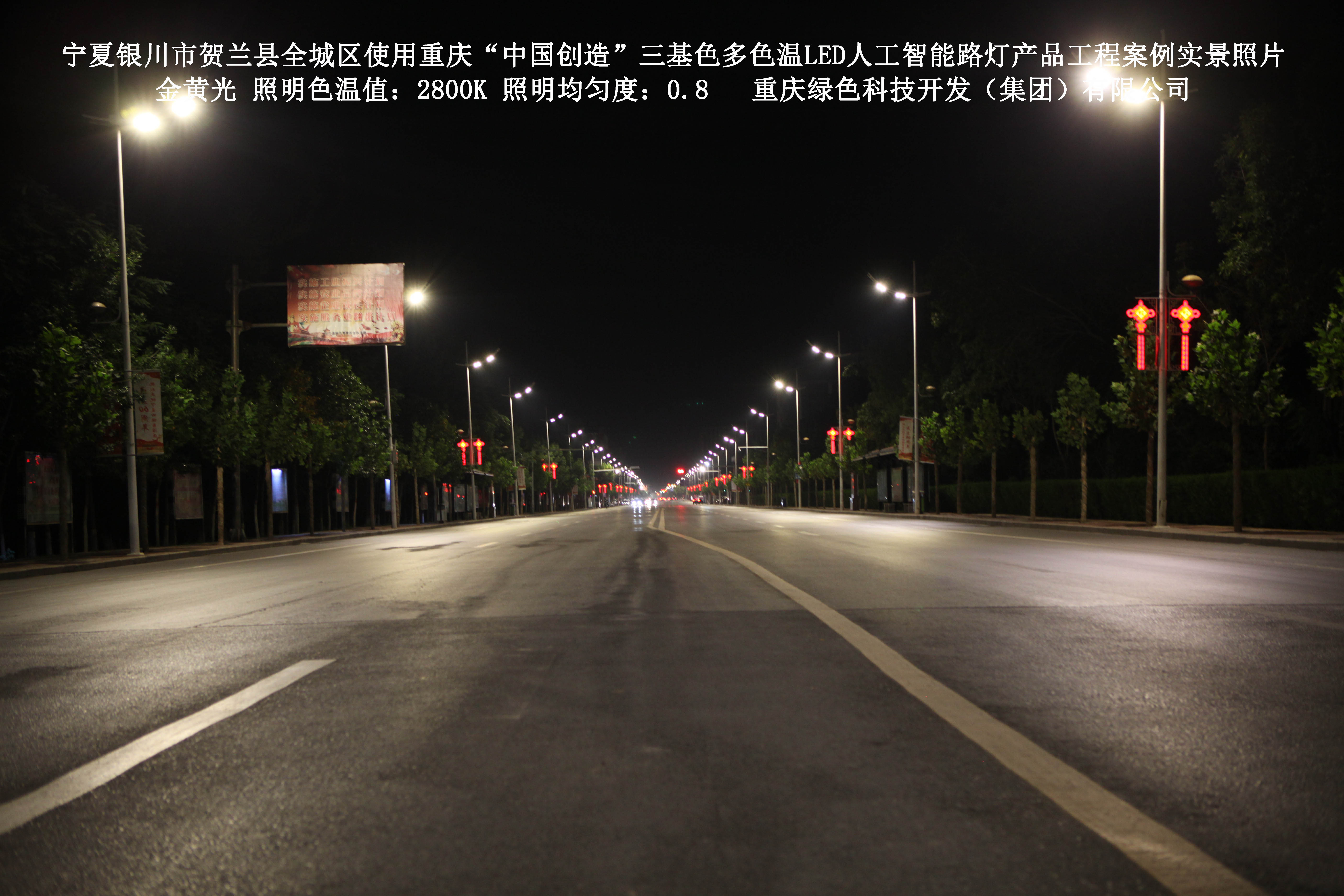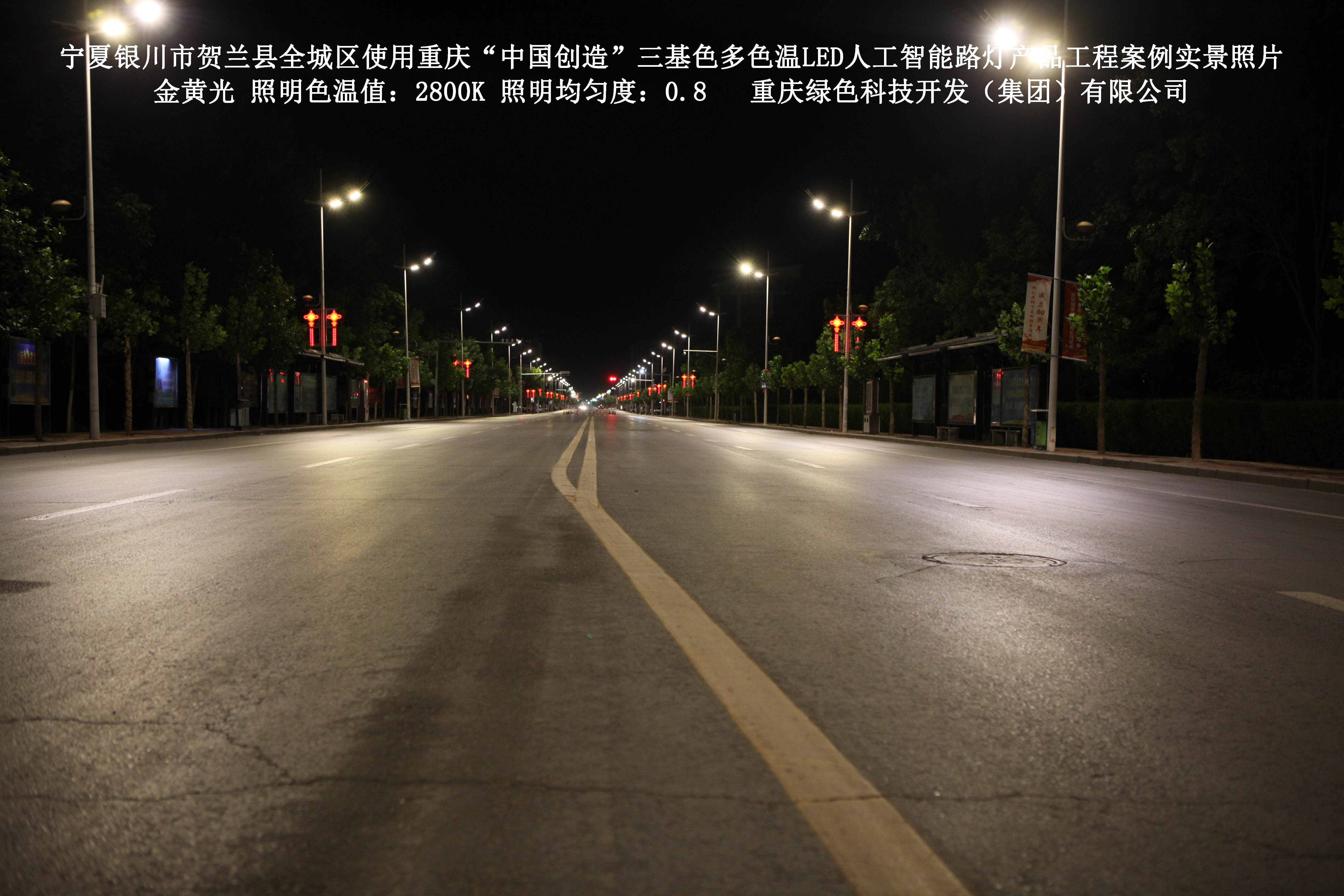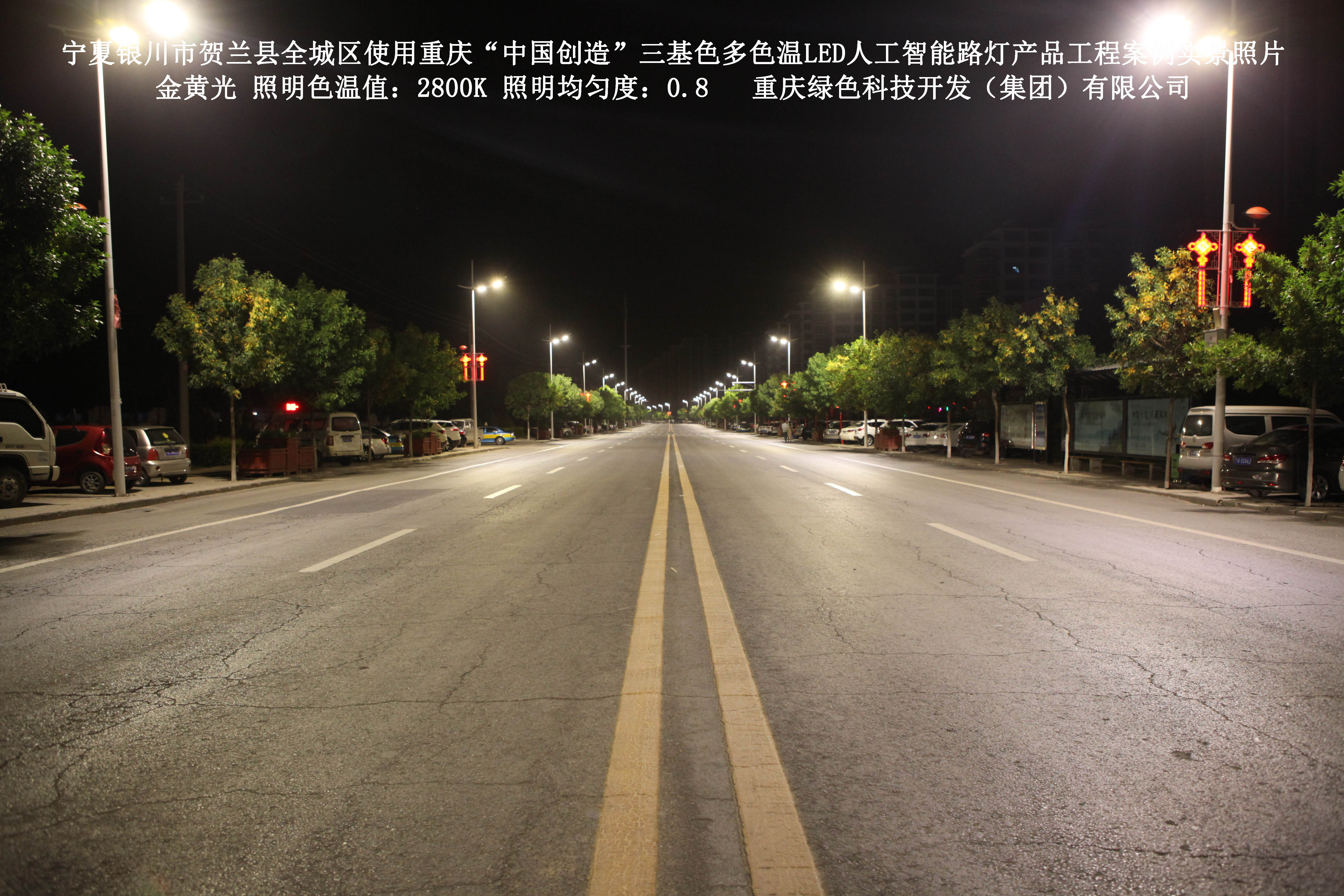 寧夏銀川市賀蘭縣全城區(qū)使用我司研造的重慶“中國(guó)創(chuàng)造”三基色多色溫
