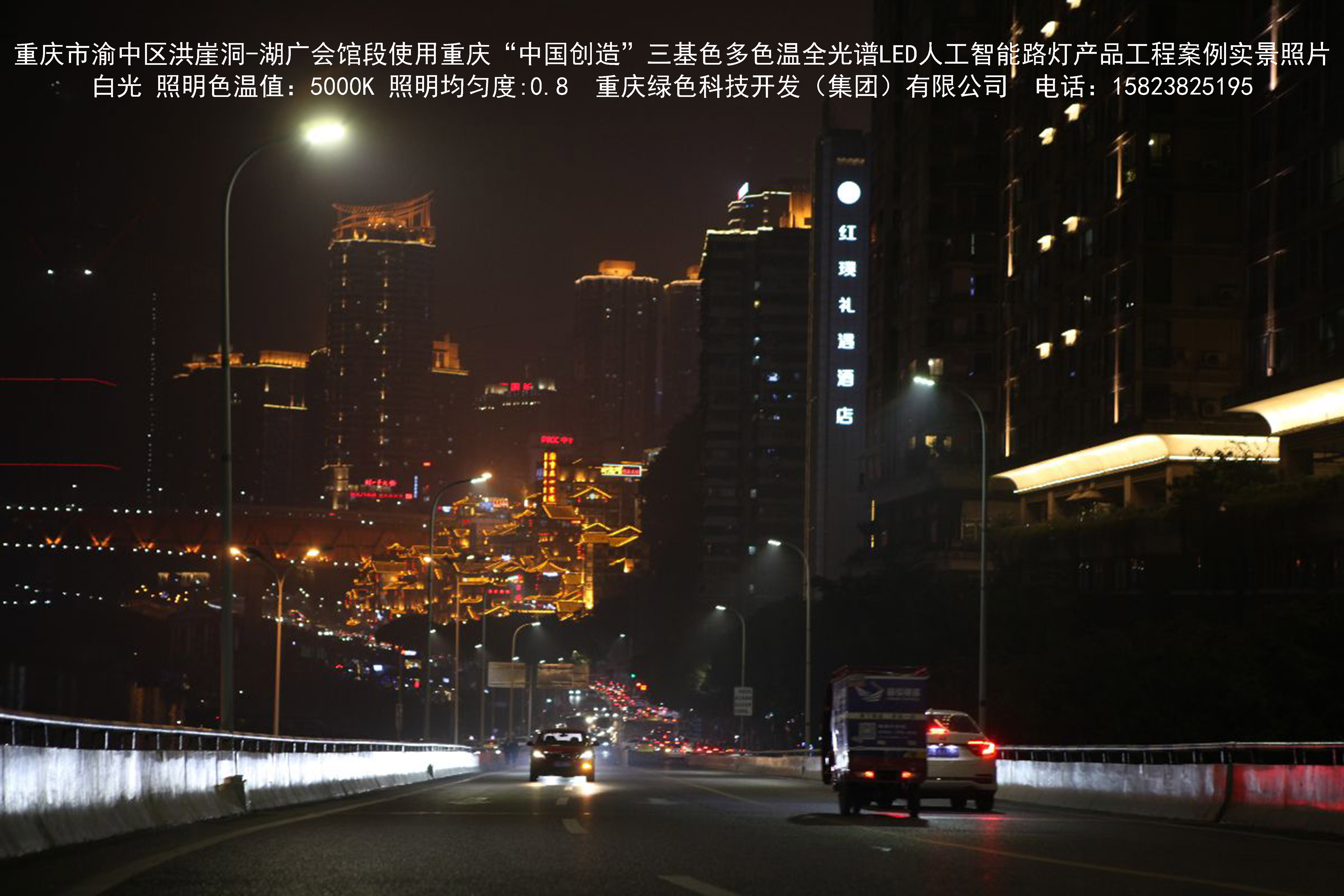 2018年12月,重慶市城市照明管理局使用我司自主研發(fā)制造的重慶“中國(guó)創(chuàng)造”三基色多色溫全光譜LED人工智能路燈系列產(chǎn)品,實(shí)施了渝中區(qū)市政設(shè)施品質(zhì)提升工程。該工程已全面竣工。工程實(shí)施后,極大地提高了城市照明清晰度、燈光均勻度、舒適度。通過智能終端實(shí)現(xiàn)單燈感知、線纜防盜報(bào)警,與原高壓鈉燈相比,節(jié)能率60%以上,有效解決了關(guān)閉控制回路或間隔關(guān)燈方式造成的照明暗區(qū),確保行人和車輛通行的安全,實(shí)現(xiàn)城市路燈照明系統(tǒng)的智能化管理,推進(jìn)了智慧城市建設(shè)。