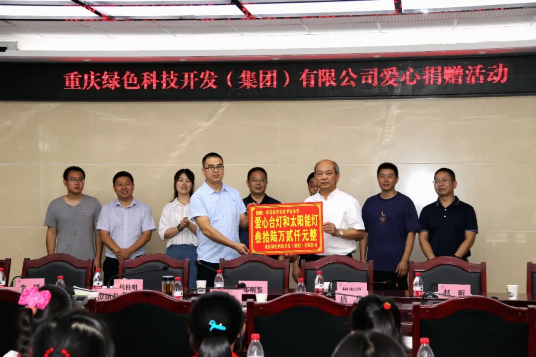 2020年8月5日,重慶綠色科技開(kāi)發(fā)(集團(tuán))有限公司支持國(guó)家級(jí)重點(diǎn)貧困縣精準(zhǔn)扶貧工作,通過(guò)重慶市大愛(ài)渝商慈善基金會(huì),向奉節(jié)縣平安鄉(xiāng)平安小學(xué)捐贈(zèng)多色溫多亮度無(wú)頻閃LED學(xué)習(xí)型護(hù)眼臺(tái)燈612盞、太陽(yáng)能智慧燈桿4套,總價(jià)值36.2萬(wàn)元的愛(ài)心物資,助力脫貧攻堅(jiān)。